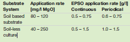 • EPSO Top® dissolves rapidly and without residue in water and is therefore perfectly suited to foliar application with a sprayer and also for fertigation through irrigation systems.