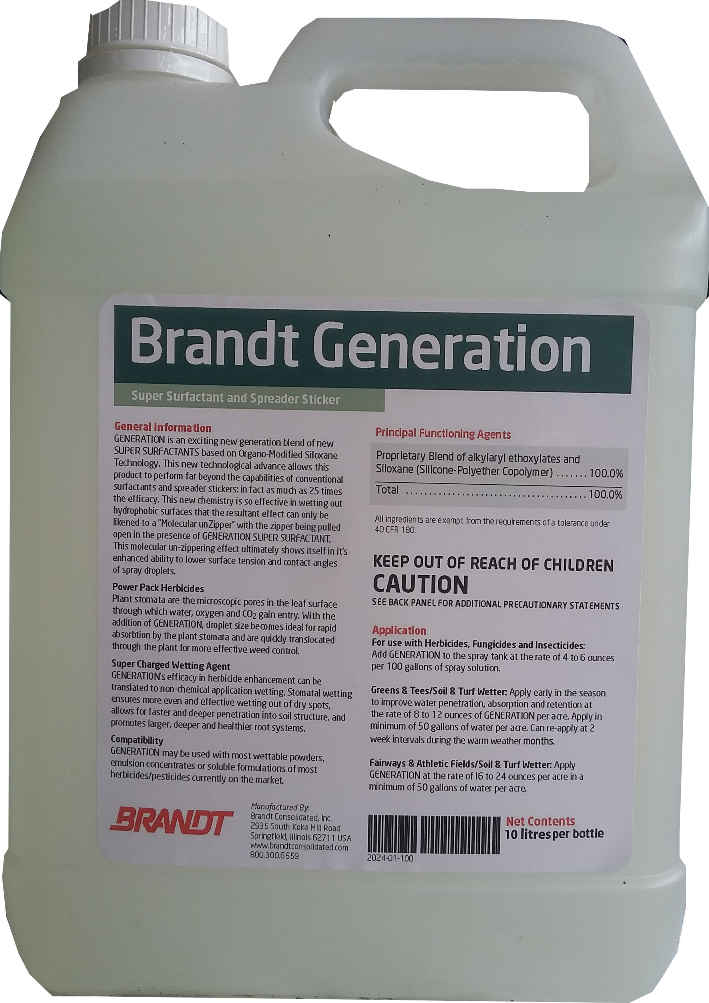 Brandt Generation (2.5 US Gal) Proprietary Blend of alkylaryl ethoxylates and Siloxane :100.0%